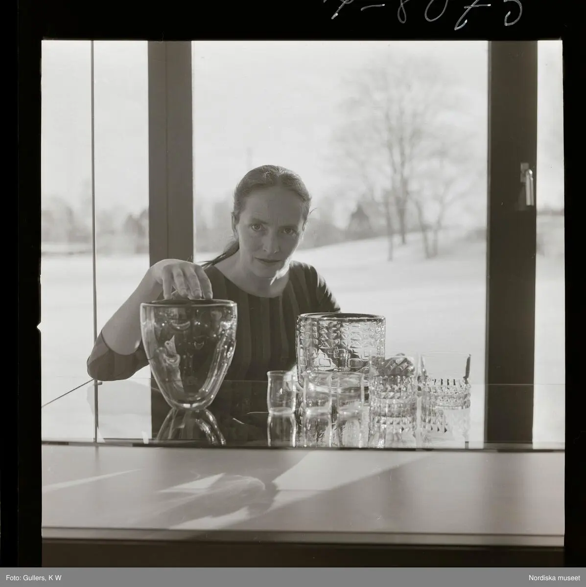 1713 Orrefors Glasbruk Ingeborg Lundin. Porträtt med sina formgivna glasförmål.