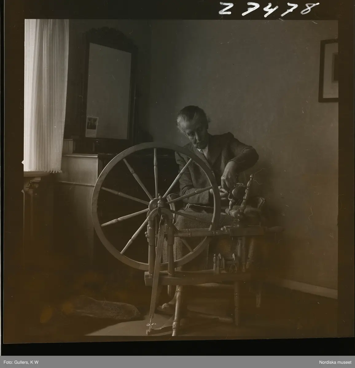 2374 Nilsson Fröken, Majvägen 7, Bromma Handarbete-korgflätning-tagn. Svensk Hemslöjd; vid Spinnrocken Jan. 57