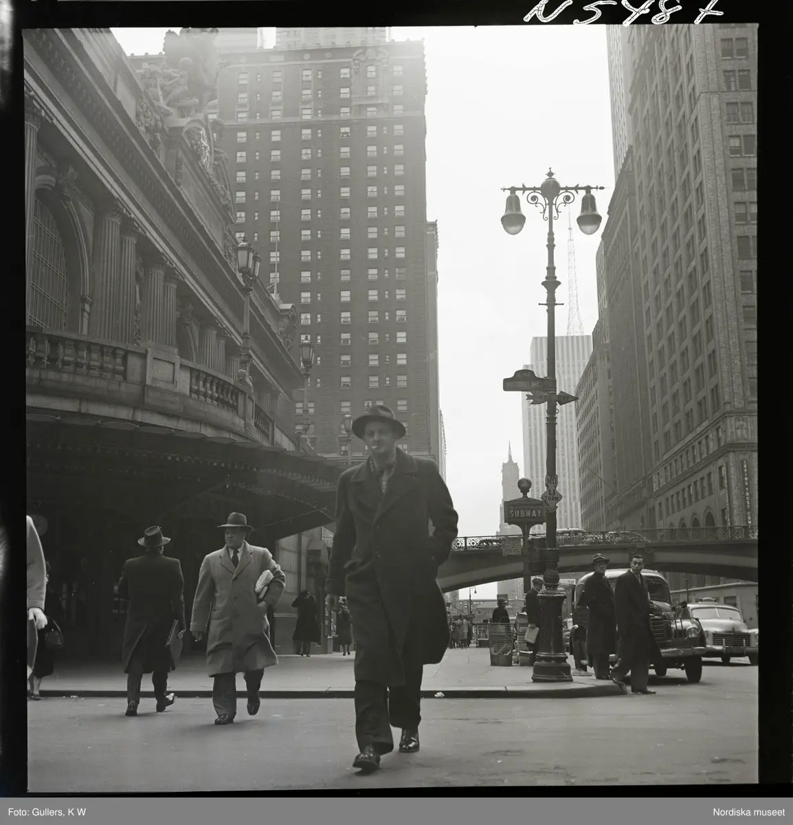 1690 New York allmänt (N.Y. Herald Tribune). K W Gullers promenerar på gatan utanför Grand Central station.