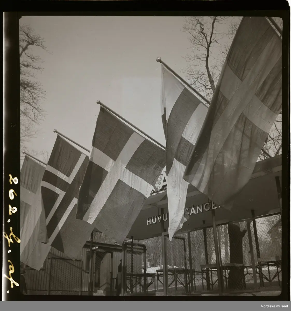 De nordiska ländernas flaggor vid Skansens huvudingång, Stockholm.