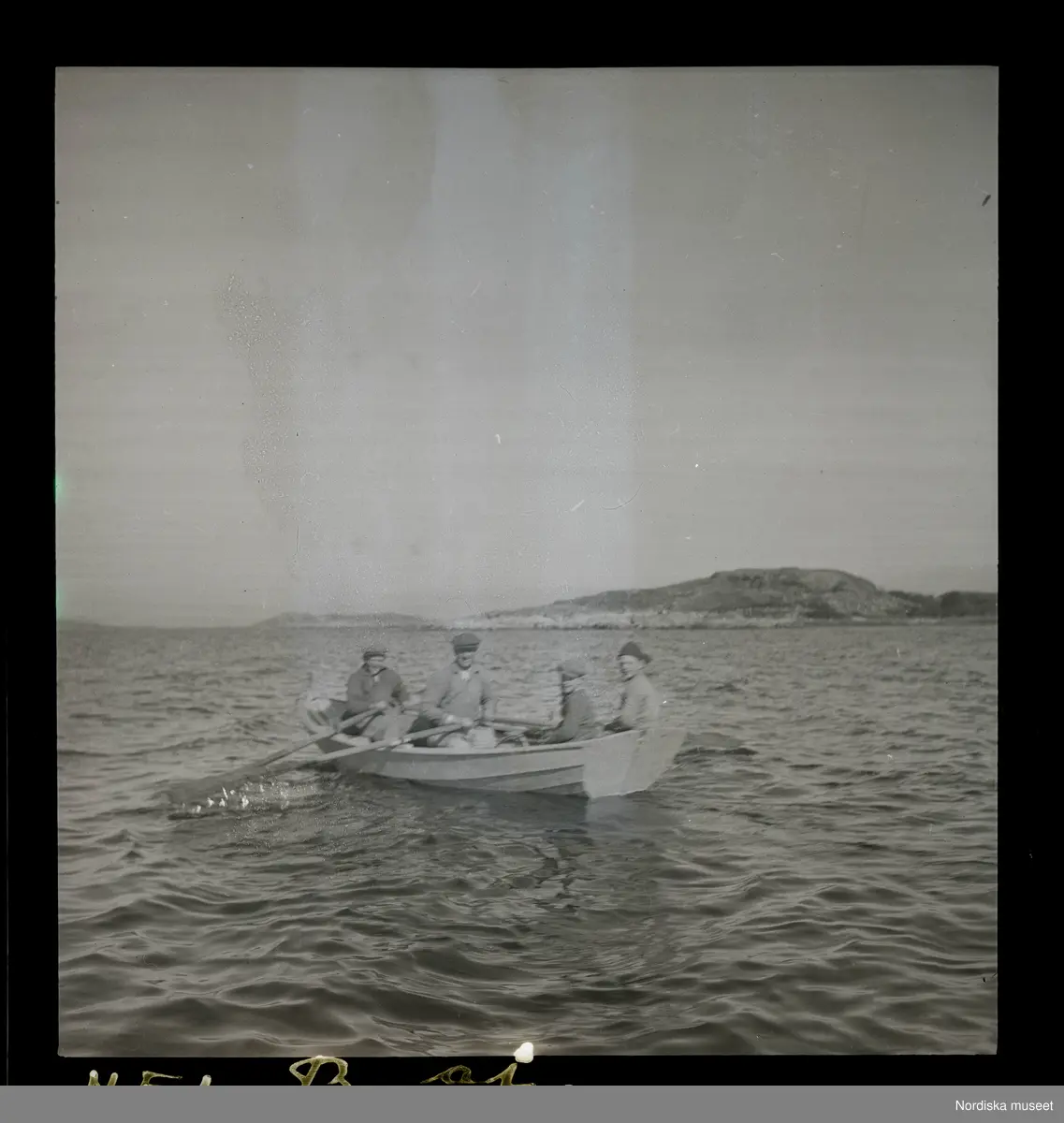 Karl på Hallera och hans pojkar i ekan utanför Vrångö hamn.