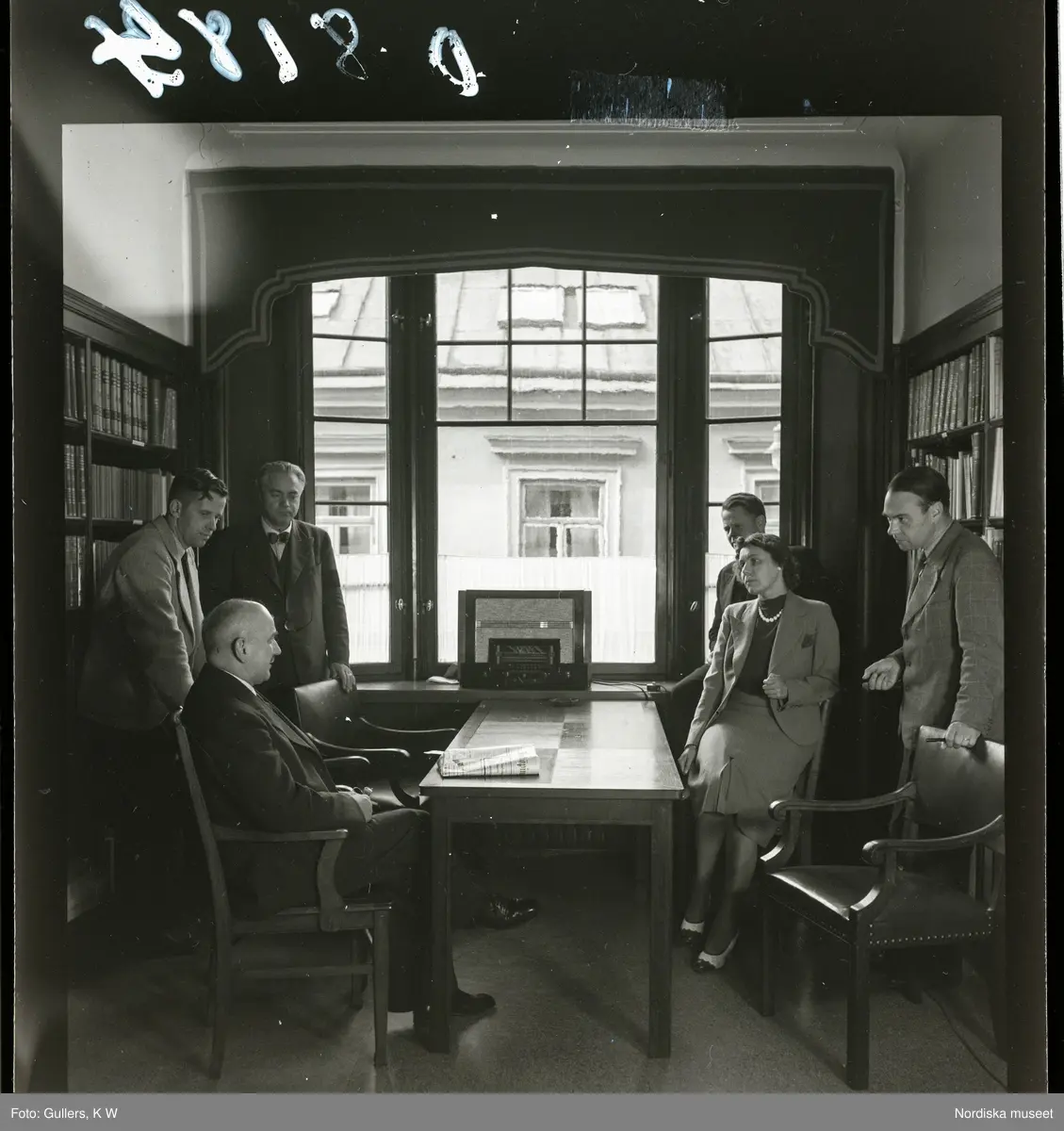 Journalist P. Wange med kollegor på Norrköpings tidningars redaktion.