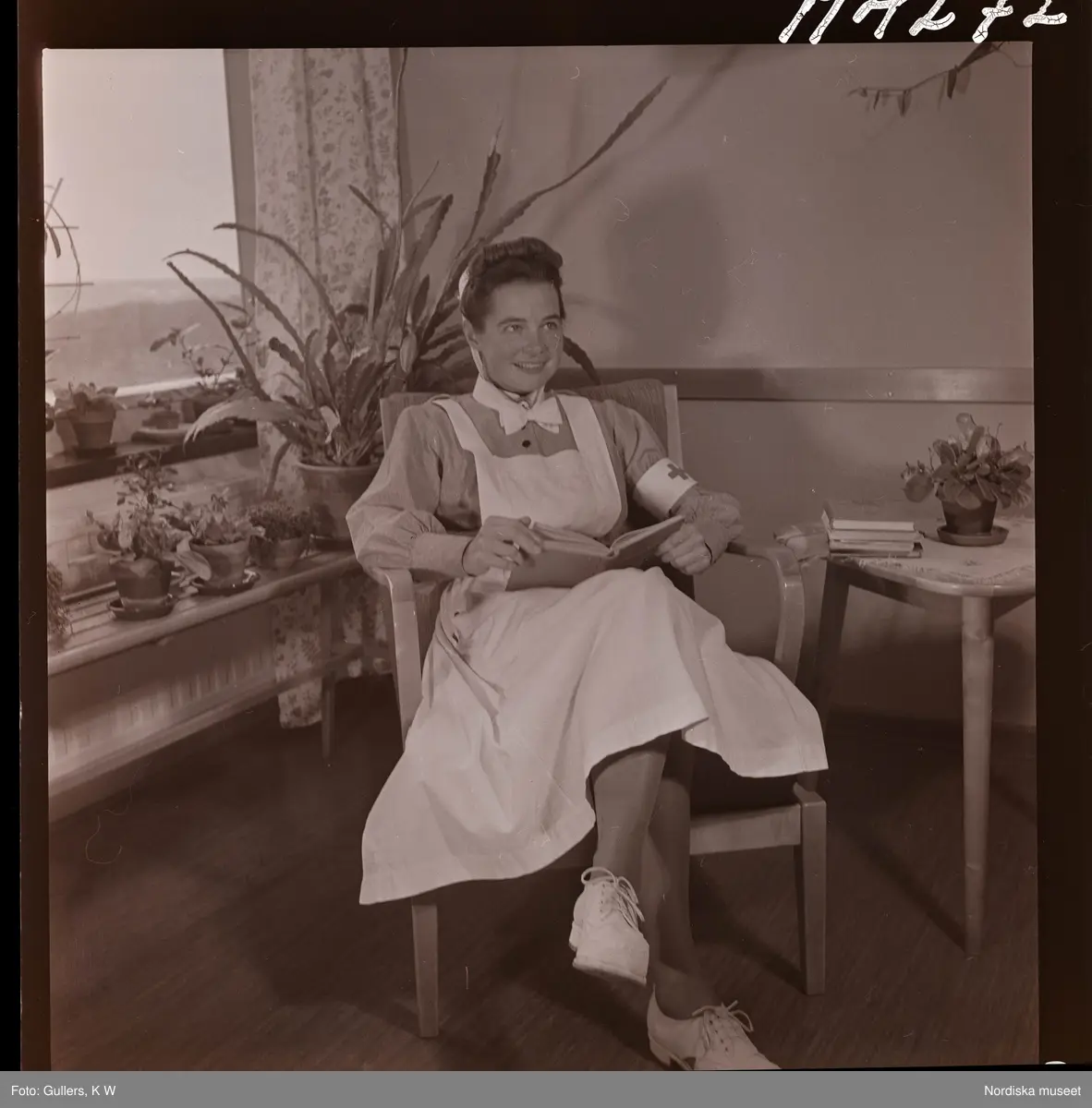 1714 En sjuksköterskas arbetsdag på södersjukhuset. En sköterska sitter och läser i en bok.