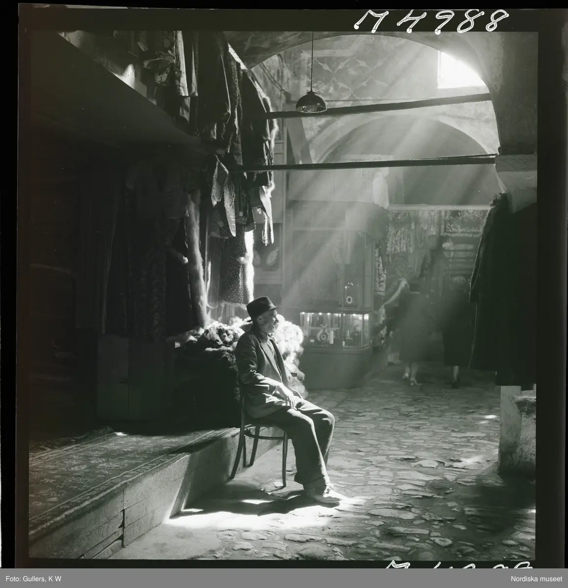 1717/K Istanbul allmänt. Gatuliv. En man sitter framför en butik i en gränd.