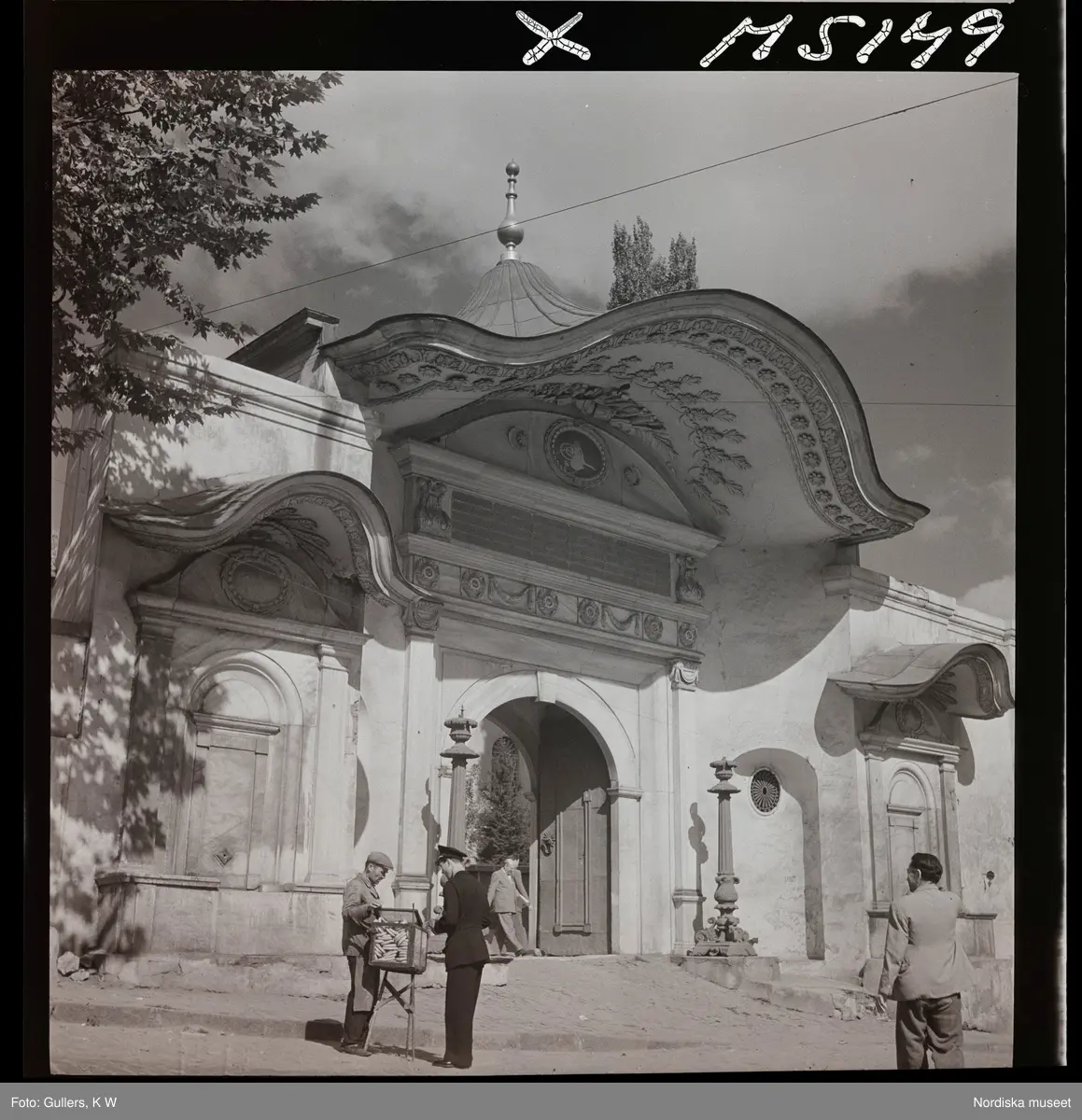 1717/K Istanbul allmänt. Gatuförsäljare. En man säljer bröd framför en dekorerad port.
