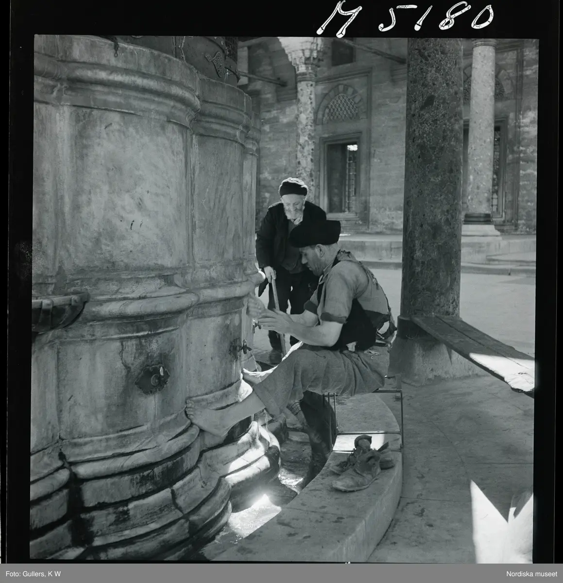 1717/K Istanbul allmänt. Man sittandes vid fontän för tvagning på gårdsplanen till en moské.