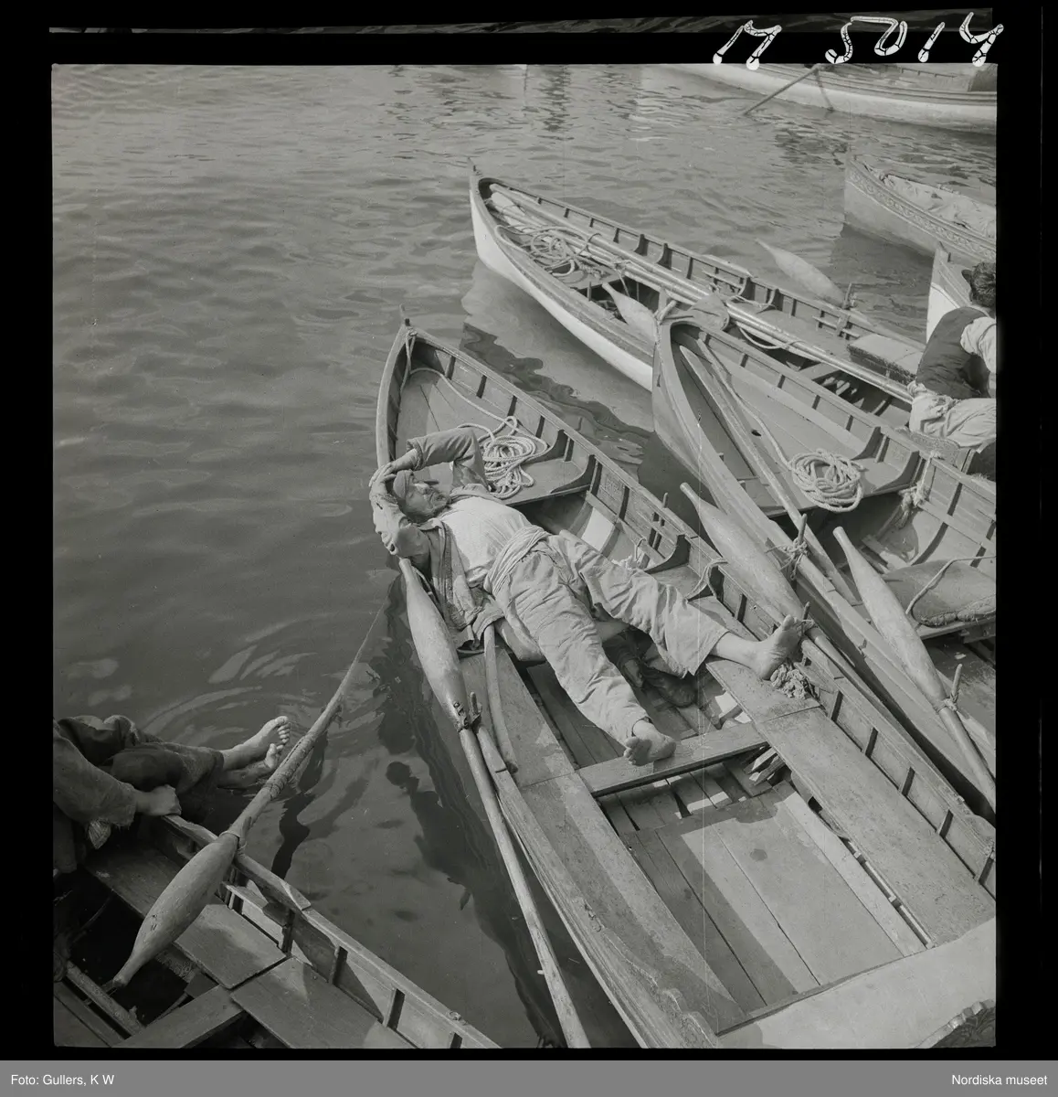 1717/K Istanbul allmänt. En man ligger och vilar i sin båt.