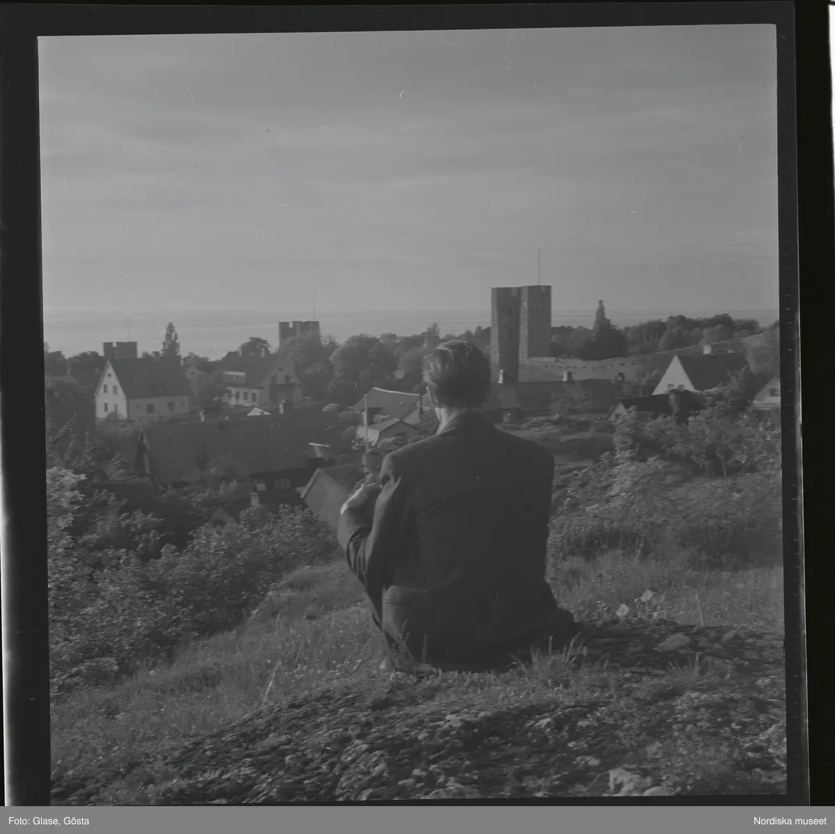 Visby i fågelperspektiv och ringmuren, 18 juni 1944.