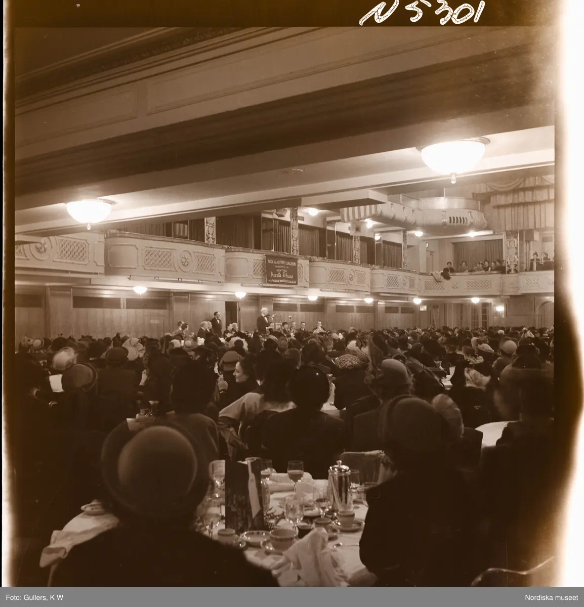 1690 New York allmänt (N.Y. Herald Tribune). Publik vid Herald Tribunes bok- och författar-lunch lyssnar på ett anförande.