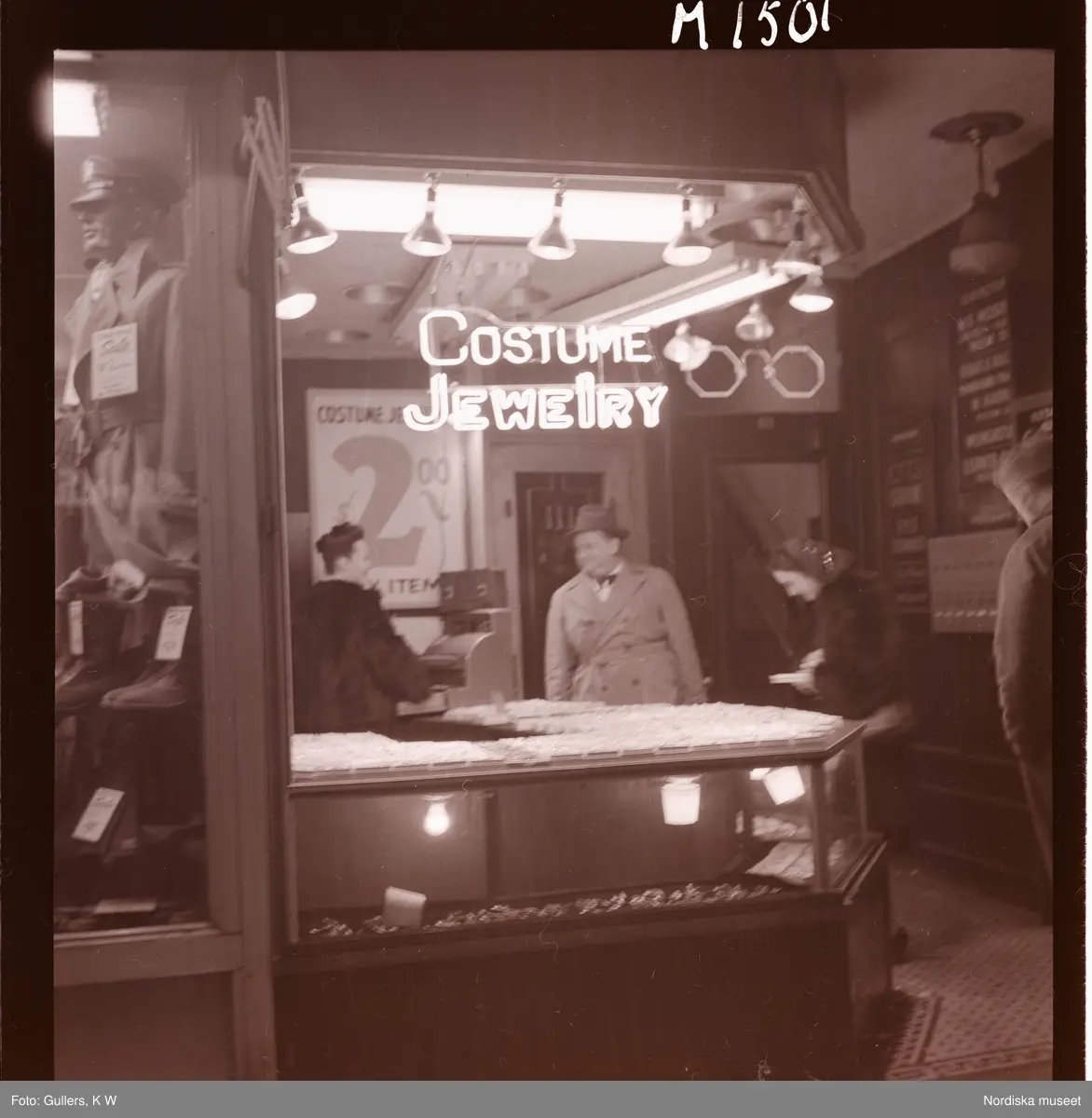 1690 New York, allmänt. Kunder i butik som säljer "costume jewelry".