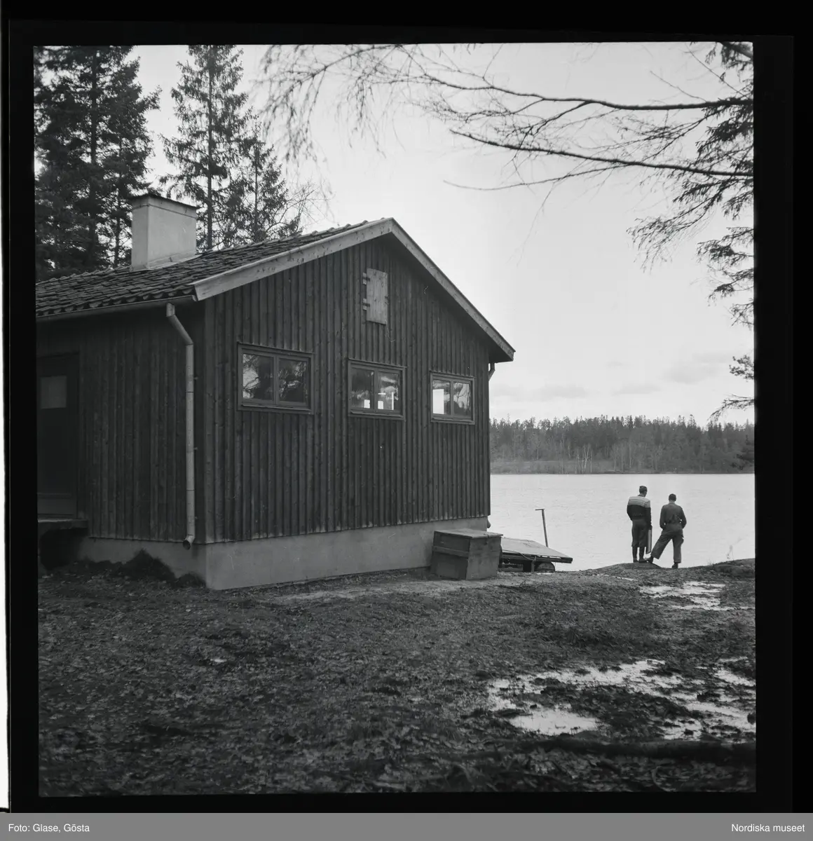 Hellasgården, Ringblom med fru på trappan samt skidåkaren Göte Andersson, 15-12-1944.