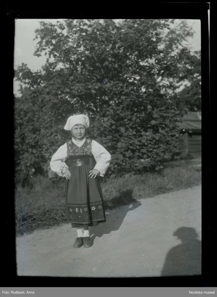 31 Skansen Ringleksbarn. En flicka i folkdräkt, utomhus på Skansen.