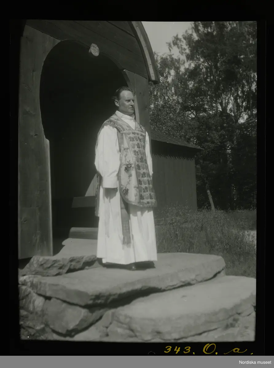 Präst på kyrktrappan. Skansen, Stockholm.