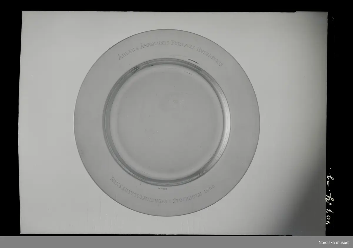 Silvertallrik "Åhlén & Åkerlunds förlags hederspris. Riksskyttetävlingen i Stockholm 1950"