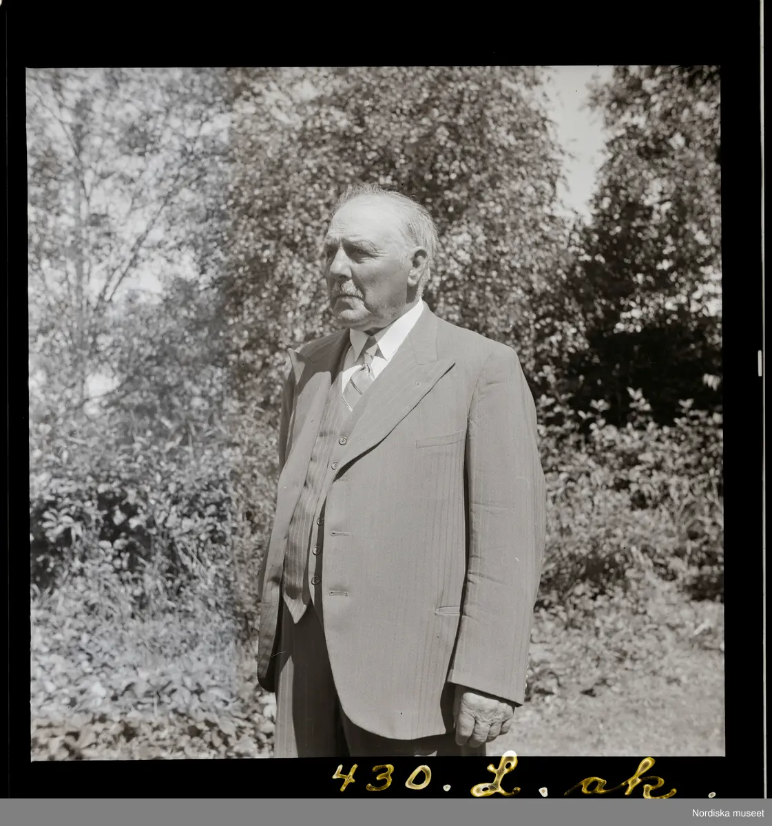 Text på montering i arkivet: Fiskaren Anders Petter Persson i trädgården.