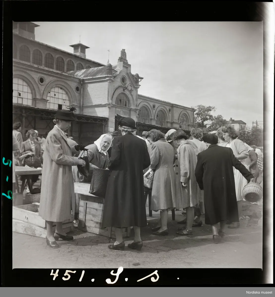Handel framför saluhallen på Fisktorget, Karlskrona.