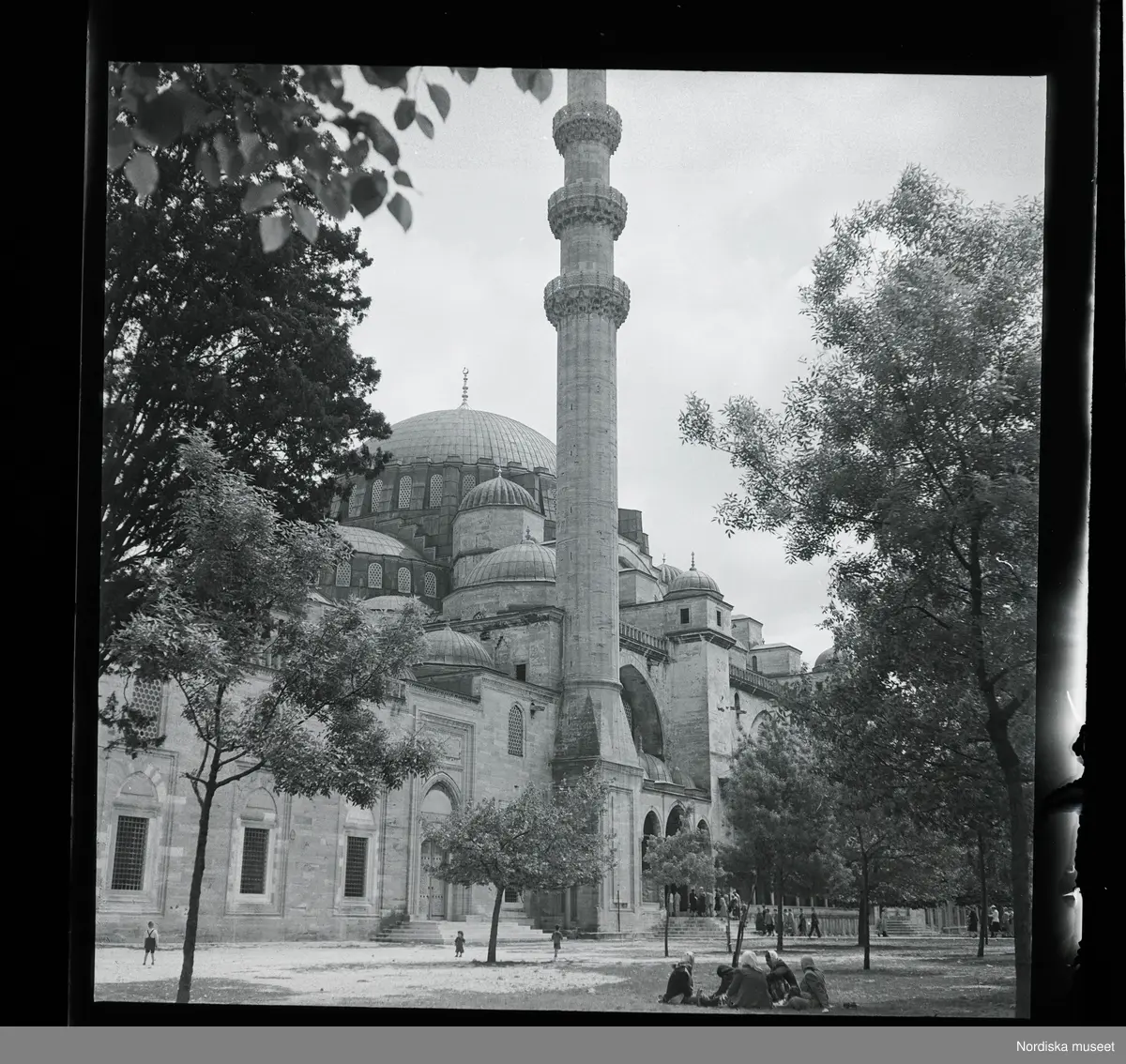 En grupp kvinnor sitter på gräset i parken framför Hagia Sofia/ Ayasofya. Allhem SP 264 Istanbul