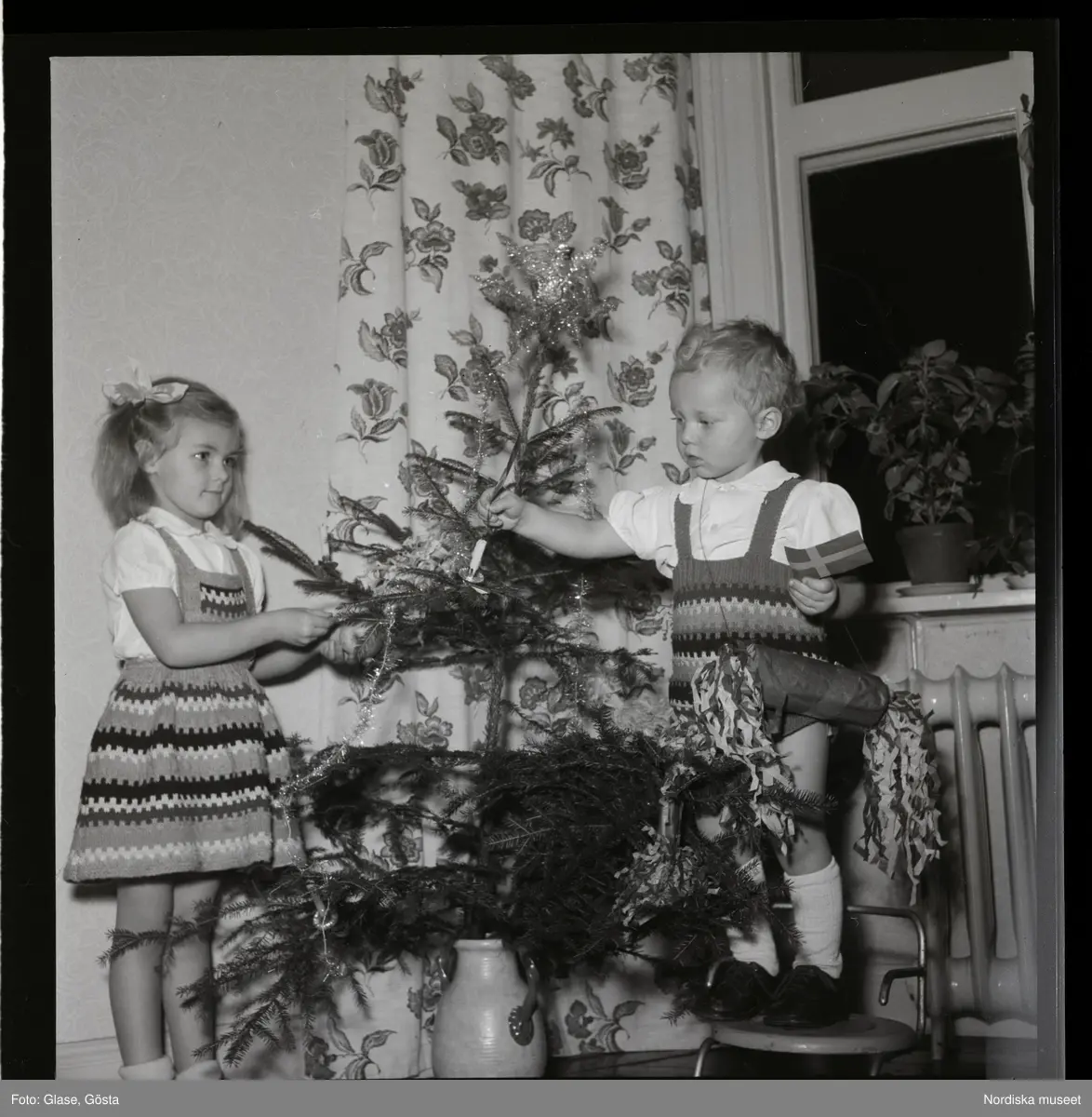 Narving Arvid, familjen, Södertälje, 1946 (barnen i julförberedelser).