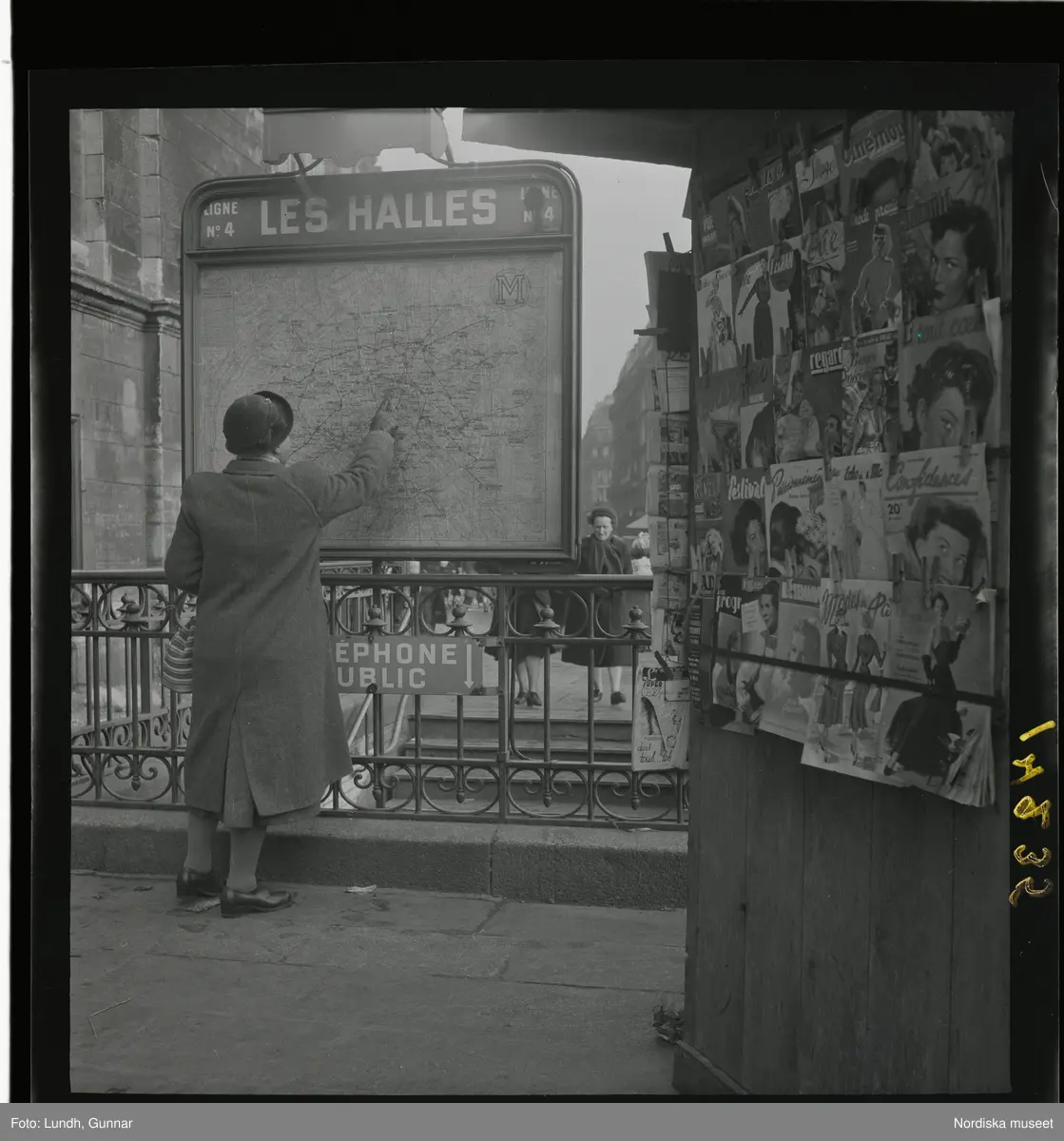 Paris 1950. Kvinna framför karta över "Les Halles"