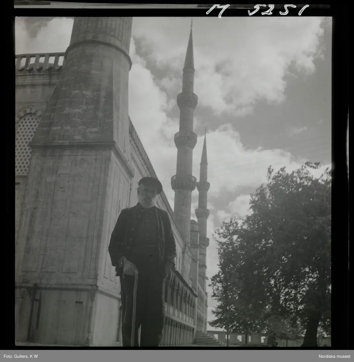 1717/K Istanbul allmänt. En man med käpp framför moské.