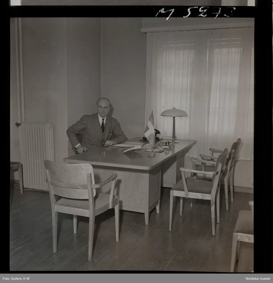 1717 I Svenska konsulatet Aten. En man vid sitt skrivbord, varpå det står en svensk flagga.