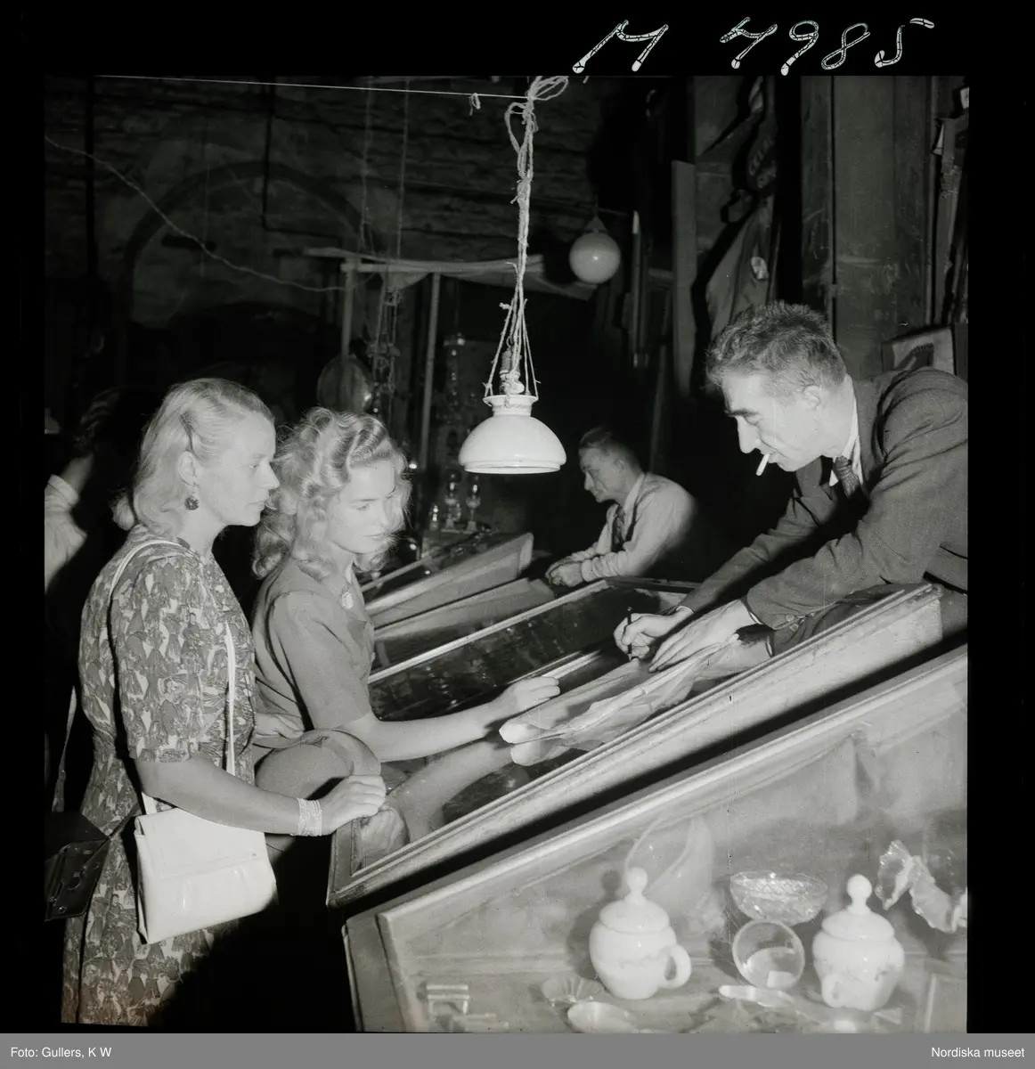 1717/K Istanbul allmänt. I en butik, eventuellt marknaden i Grand Bazaar. En försäljare visar ett par kvinnliga turister något.