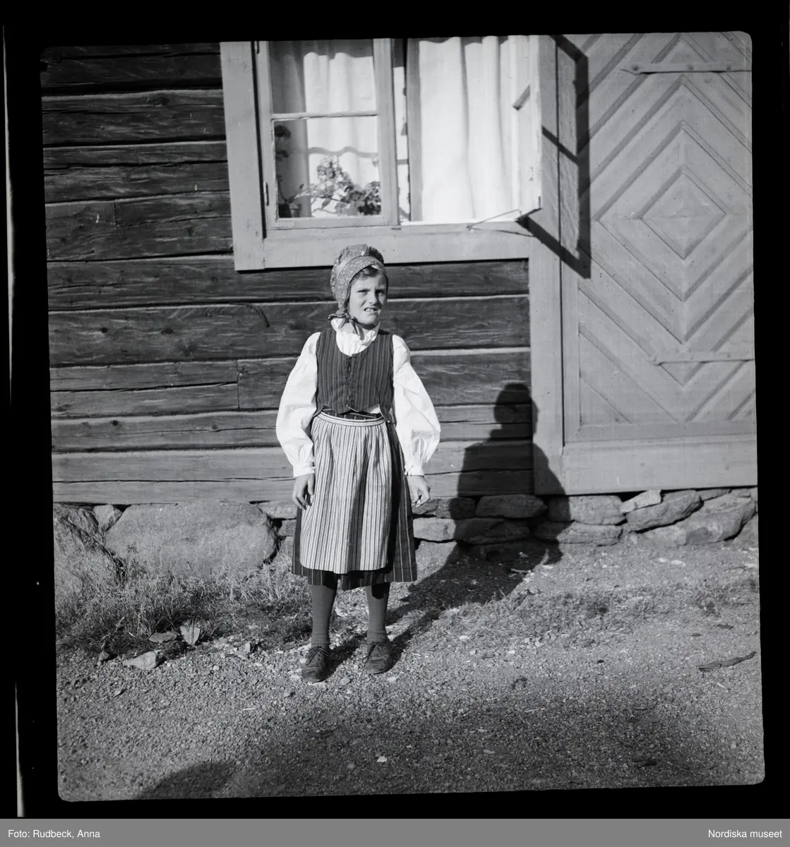 119 Skansen Ringleksbarn. En flicka i folkdräkt, utomhus på Skansen.