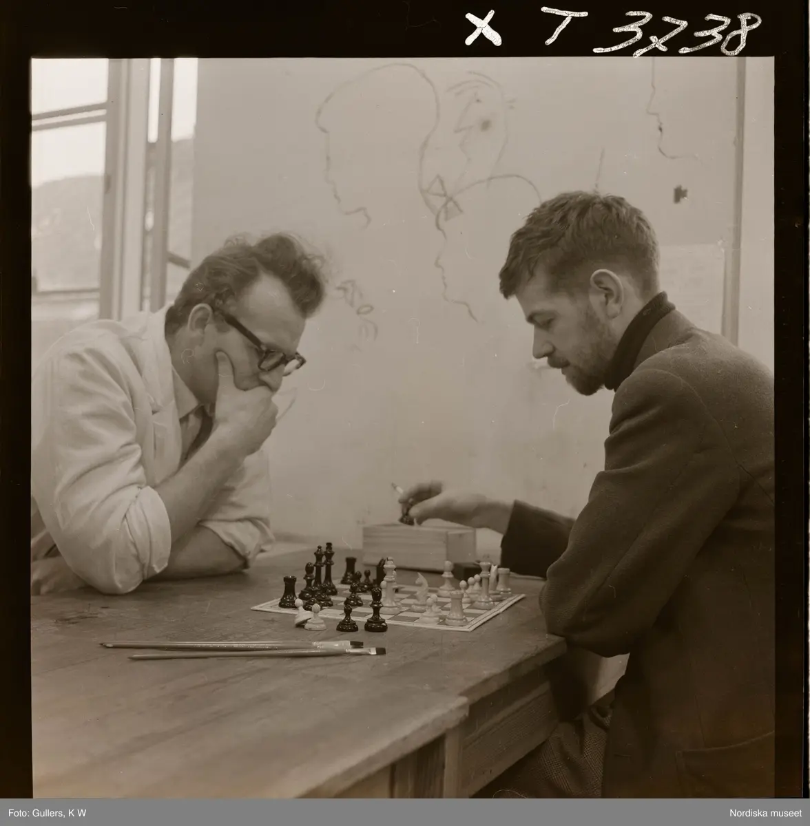 1677 B Konstfackskolan (tösen Boheman). Schackspel i ateljén.