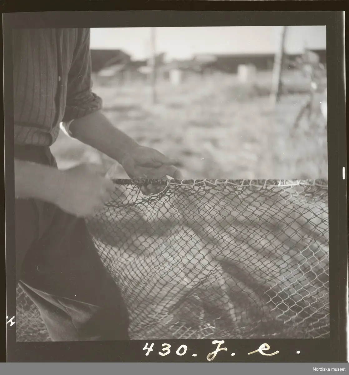 Text på montering i arkivet: Fiskaren Paul Pålsson och hans bägge söner "böda garn" på platsen invid södra kajen.