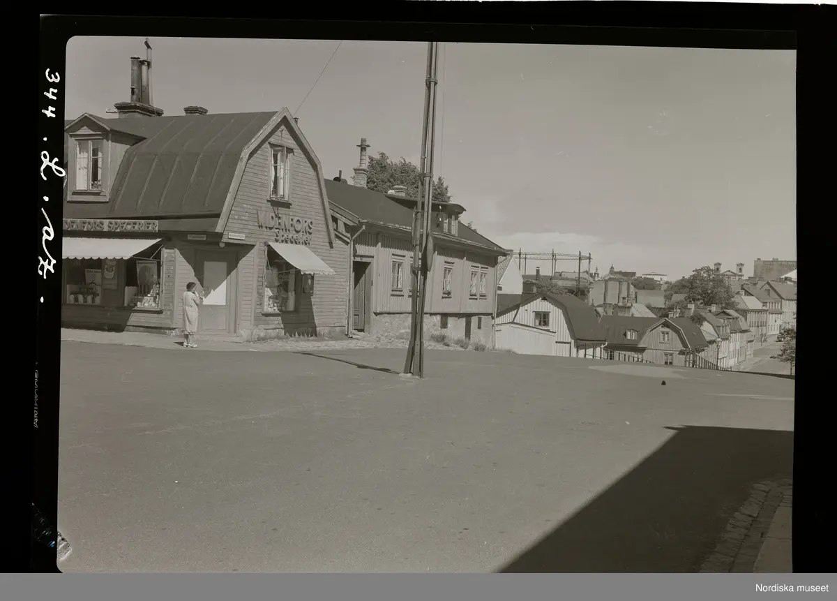 Wachtmeistergatan med Widenfors Specerier på hörnet. Björkholmen, Karlskrona.