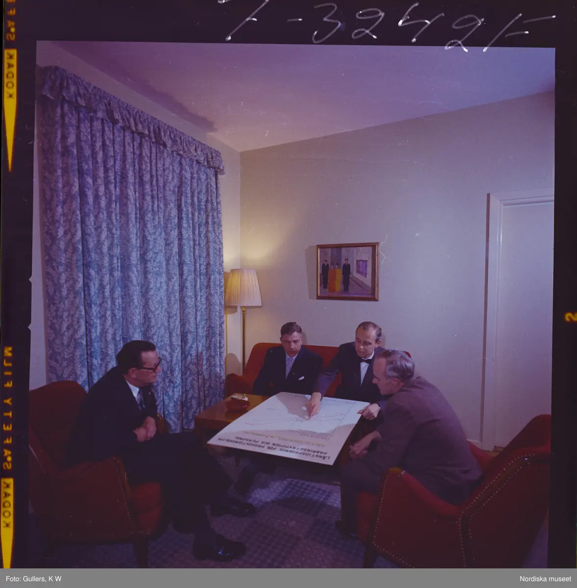 585/8 Facit Tokyo Daberg. En grupp män studerar ett stort ark med grafer.