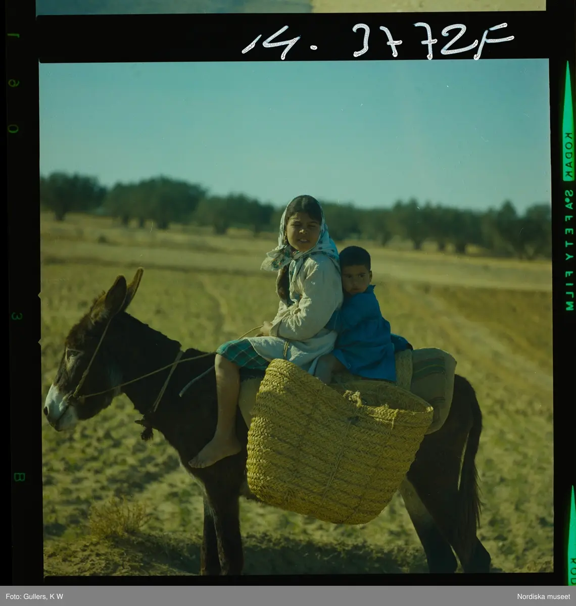 2791 Tunisien Kartago. En flicka och en pojke rider på en åsna.
