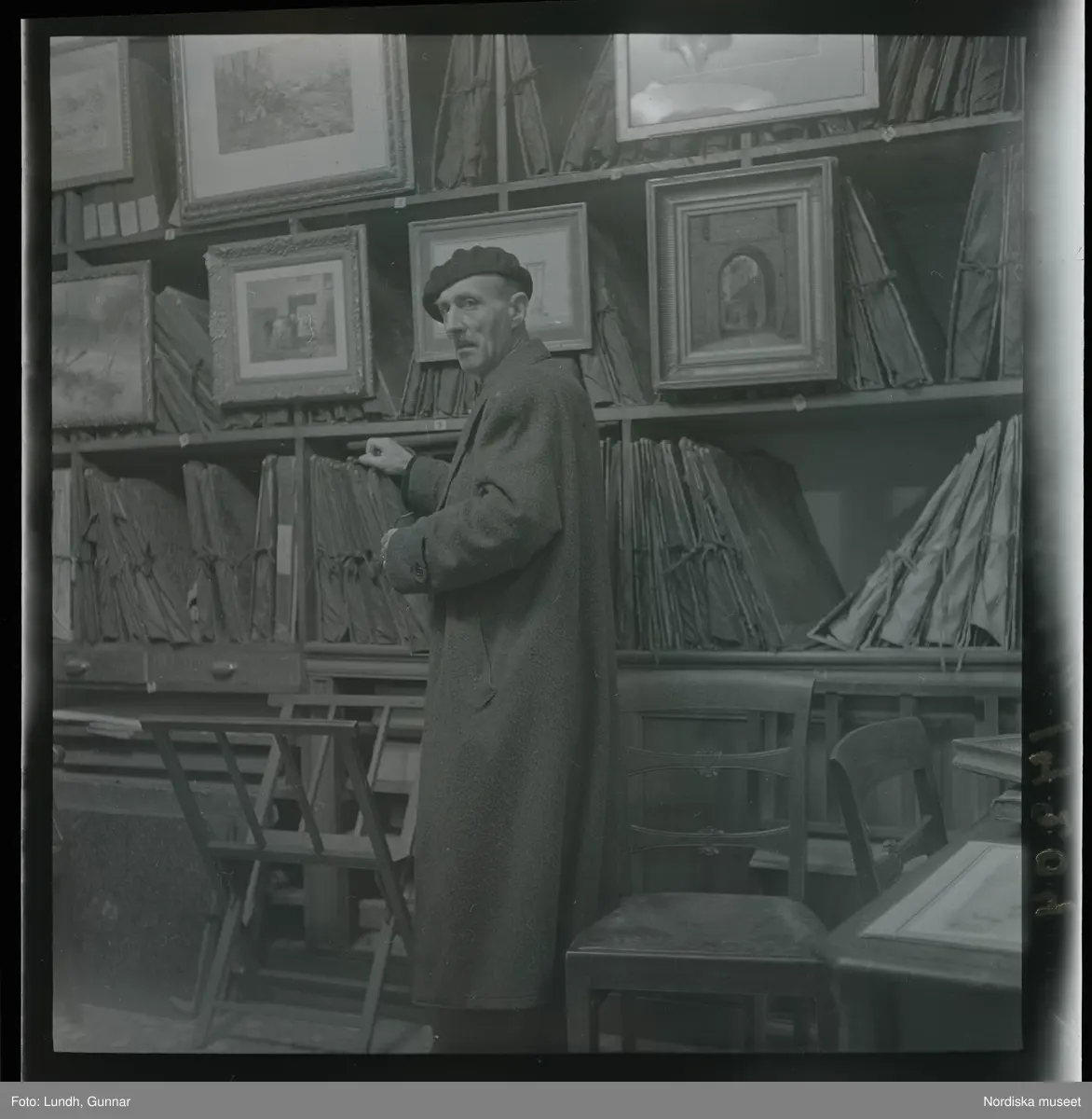 1950. Paris. En man står inne i en butik med konst.