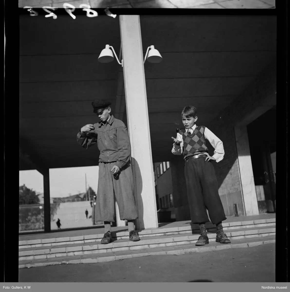 539 Söder. Två pojkar leker med jojo:s vid Eriksdals skola.