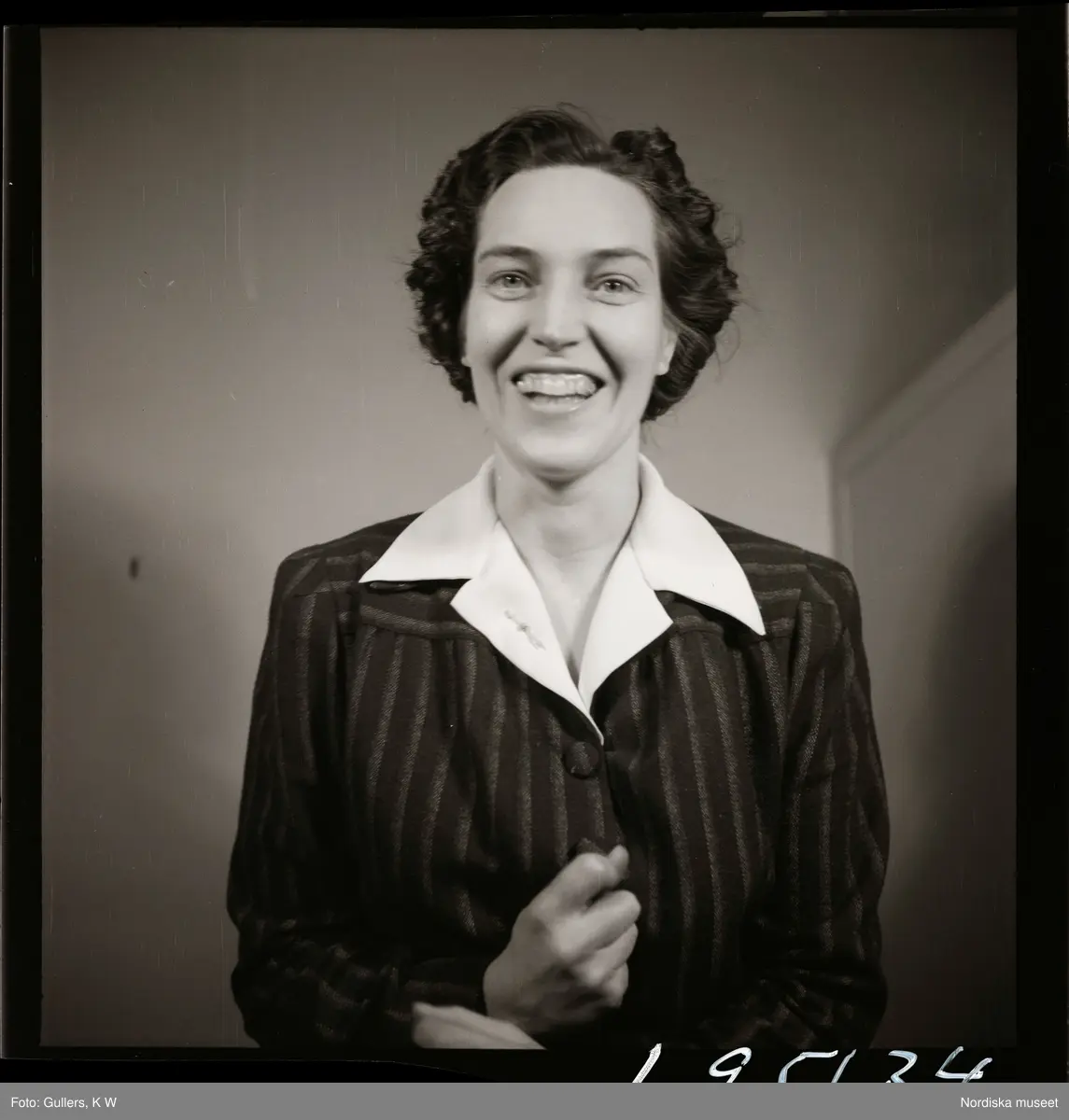 605 G, Åtvidabergs Industrier kontorsgymnastik. Porträtt av kvinna.