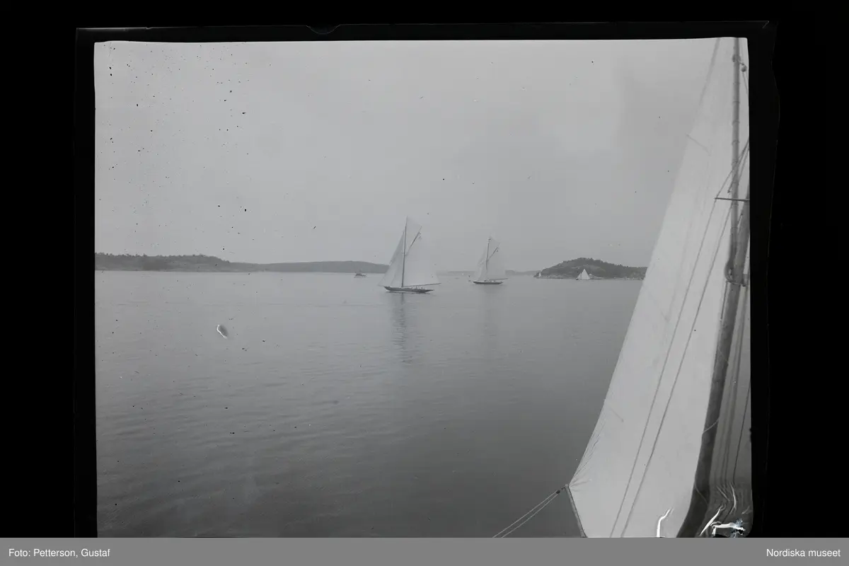 Titel: Segelbåtar. Troligtvis fotograferade under Sandhamnsregattan.