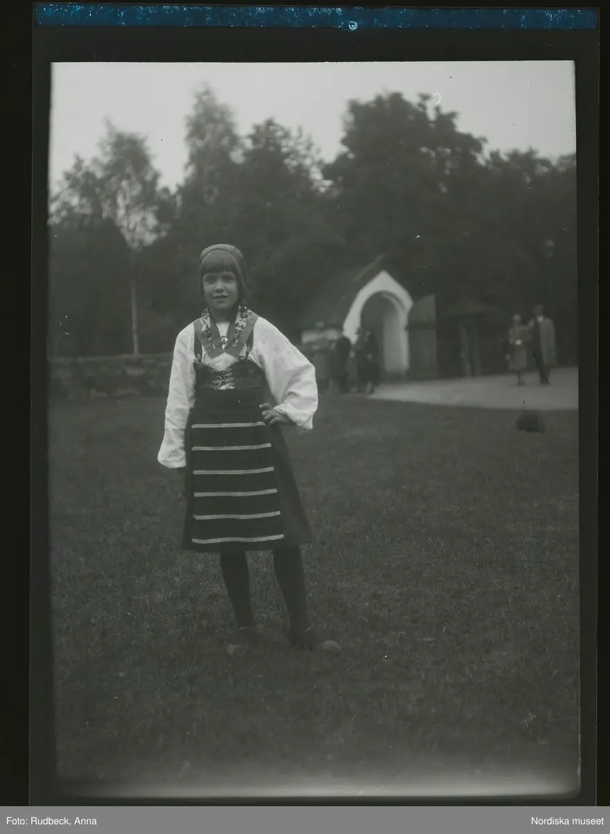 4 Skansen Ringleksbarn. En flicka i folkdräkt, utomhus på Skansen.
