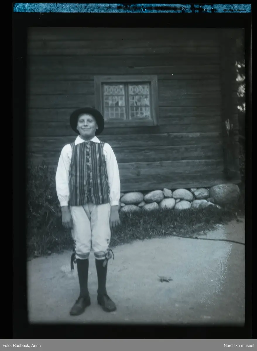 7 Skansen Ringleksbarn. En pojke i folkdräkt, utomhus på Skansen.