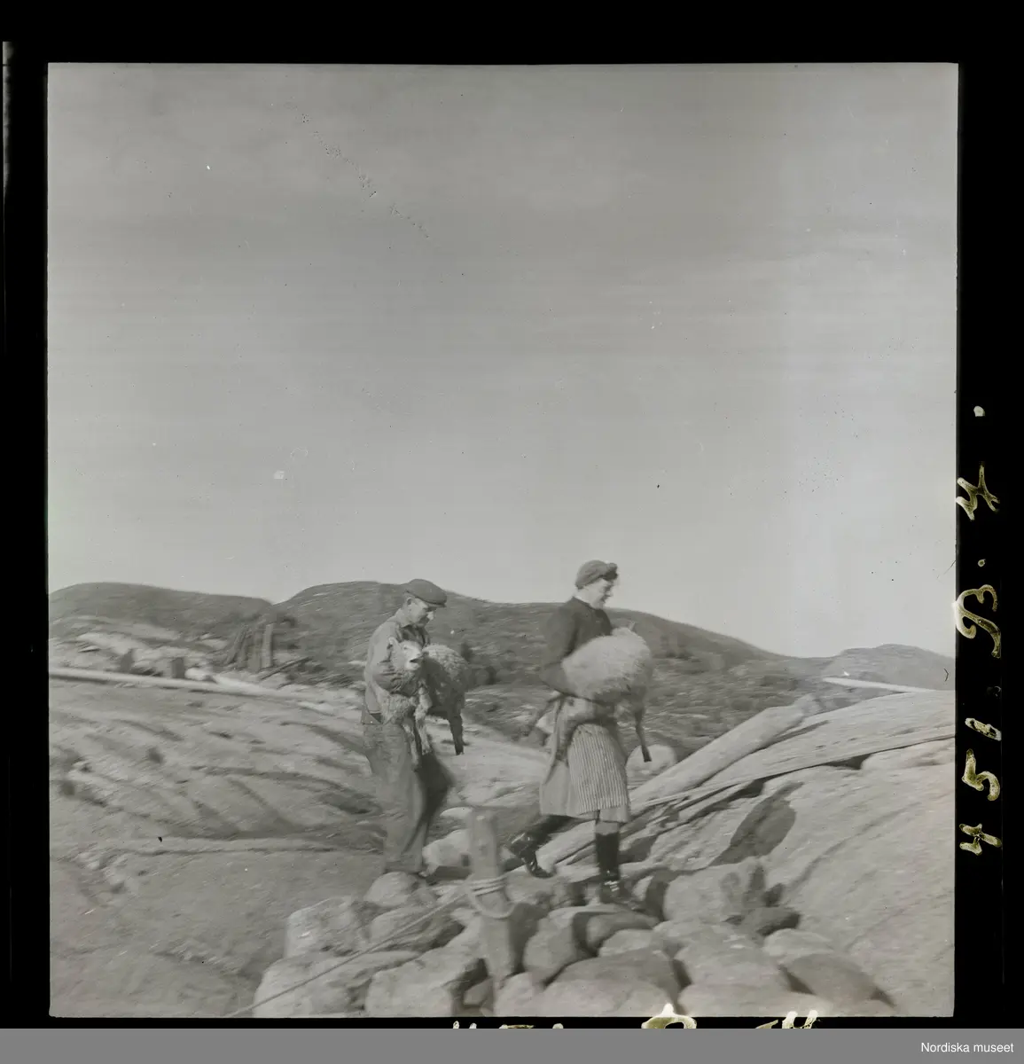 Vägen från Rollofes (Karl Olssons gård) ner till Sniken är brant och stenig. Fåren bärs en stor del av vägen. Algot Olsson och hans fru kommer ner till Sniken med varsitt får i famnen.