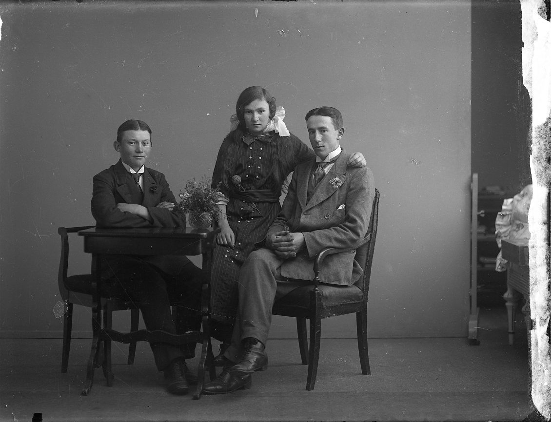 Två unga män och en ung kvinna. Syskon?