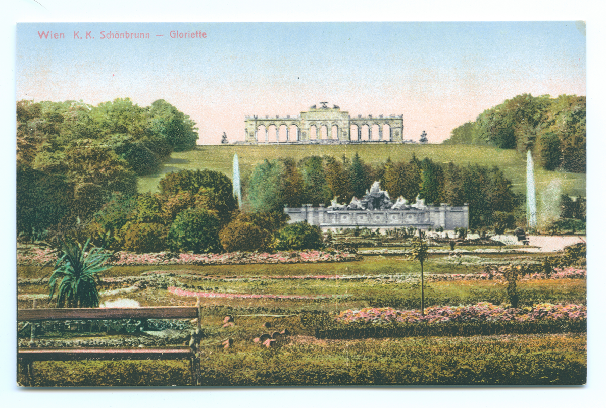 På kuvertet står följande information sammanställd vid museets första genomgång av materialet: Statyer, Schönnbrunn.