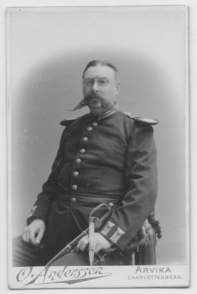 På kuvertet står följande information sammanställd vid museets första genomgång av materialet: Porträtt. man i uniform