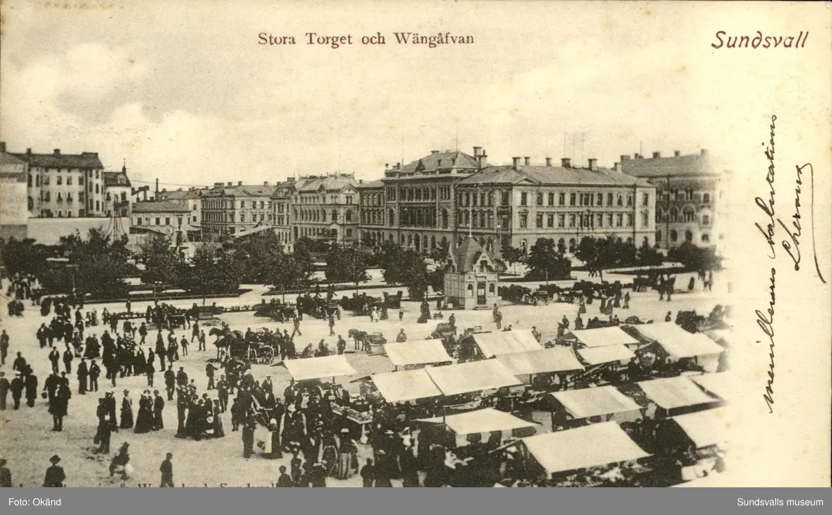 Vykort över Stora torget och Vängåvan i Sundsvall.