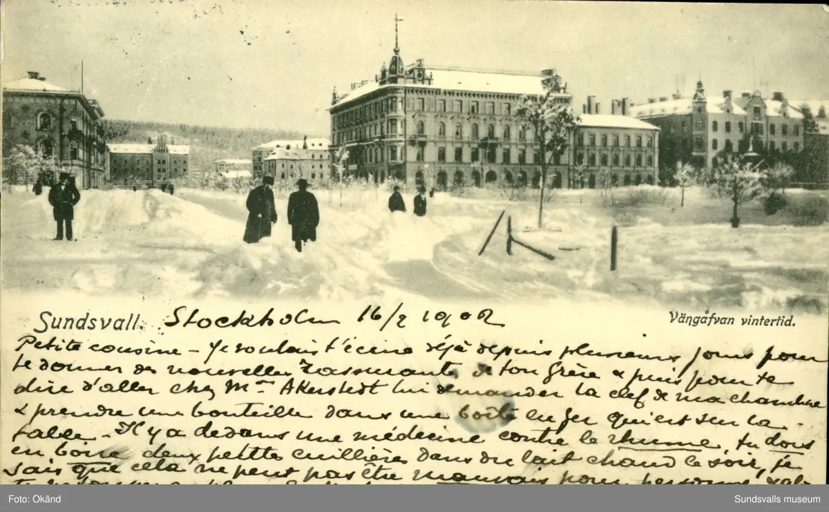 Vykort med vintermotiv över Vängåvan i Sundsvall.