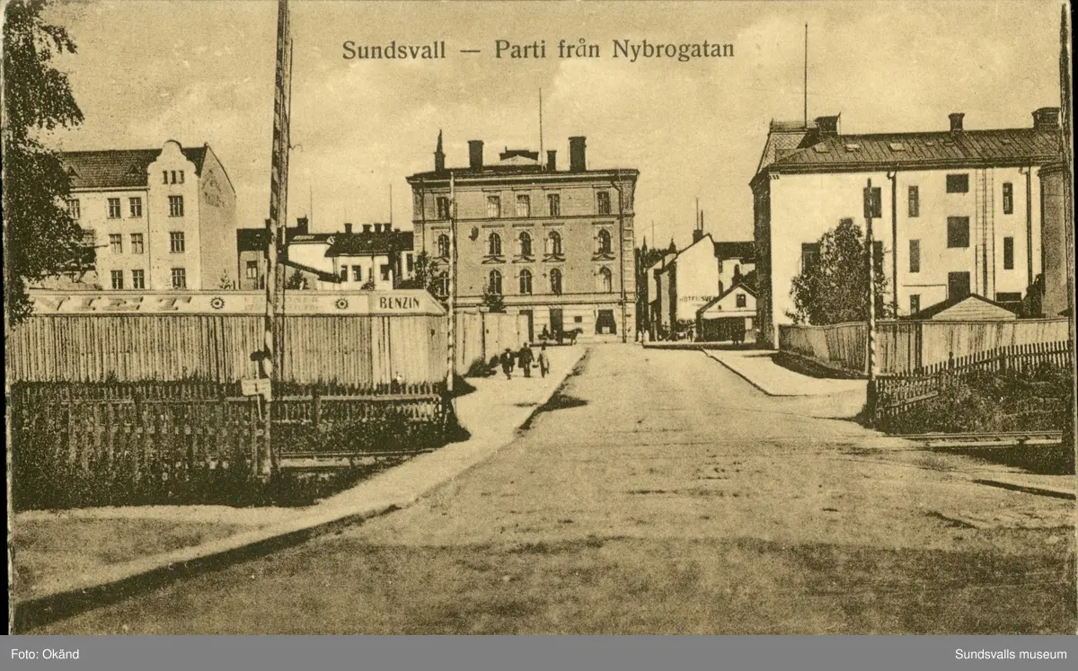 Vykort med motiv över ett parti av Nybrogatan i Sundsvall.