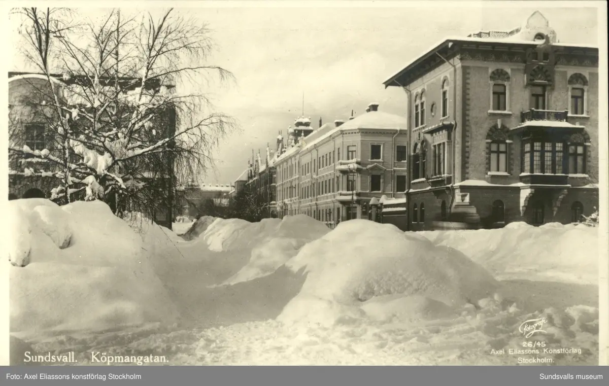 Vykort med motiv över Köpmangatan i Sundsvall.