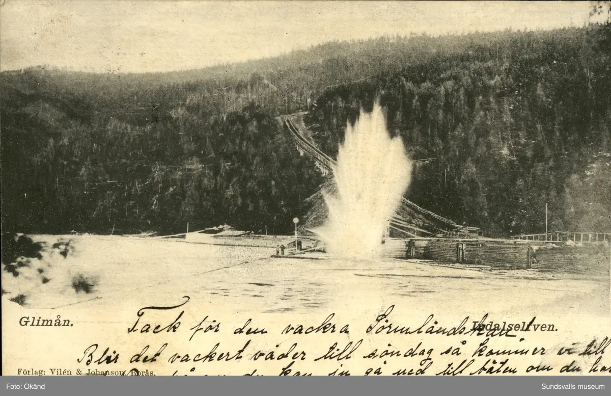 Vykort med motiv över Glimånrännan vid Indalsälven.