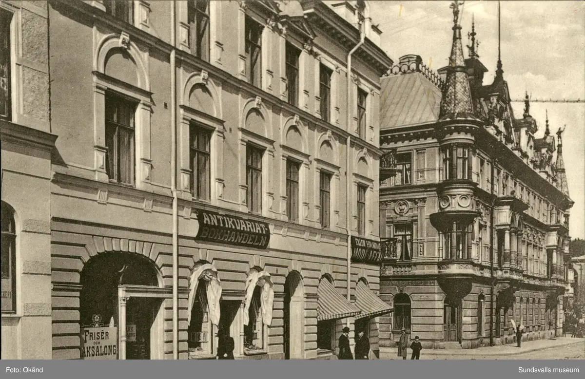 Vykort med motiv över parti av Esplanaden i Sundsvall.