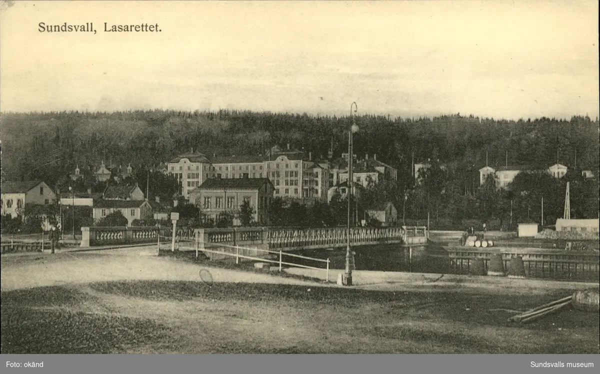 Titel: Vykort med motiv över Lasarettet i Sundsvall.