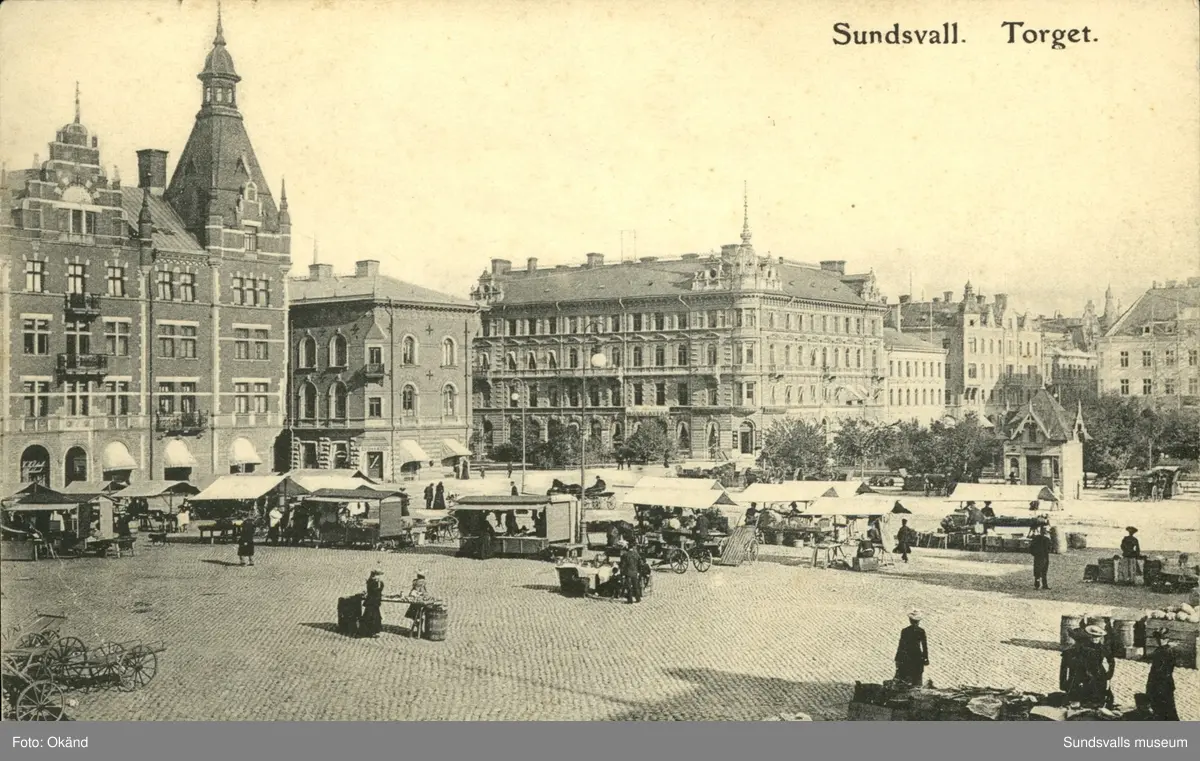 Vykort över Stora torget i Sundsvall.